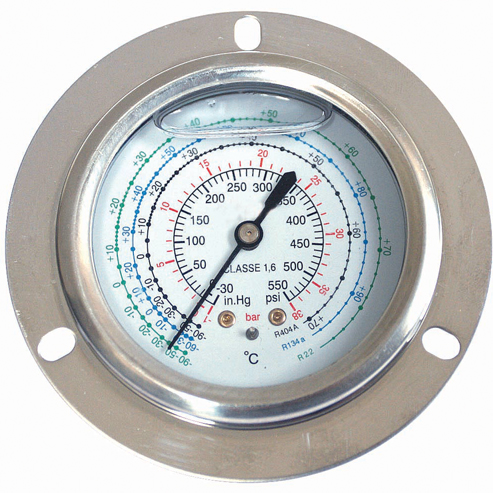 冷媒压力表适用于测量无爆炸危险、不易结晶、不凝固及对仪表零件不起腐蚀作用的液体、气体和蒸汽等介质的压力和负压,特别适用于强烈脉动介质压力和环境强烈振动场所介质压力的测量,能在强振动环境中将示值稳定地指示出来。