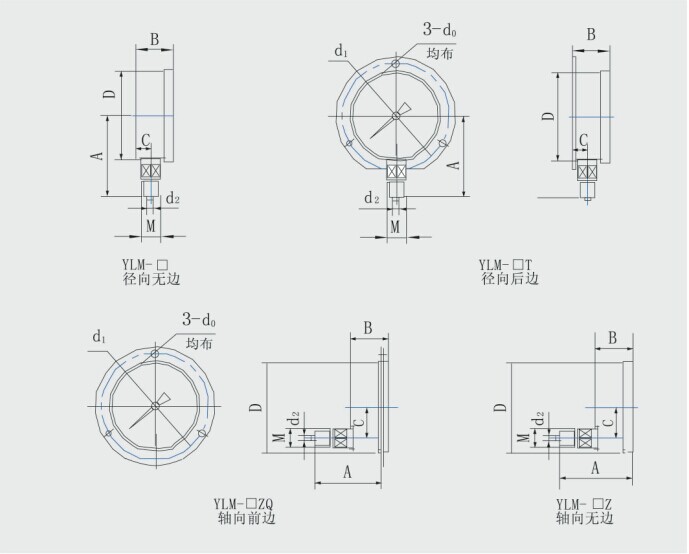 YNBF-40Ⅲ轴向带边不锈钢耐震压力表